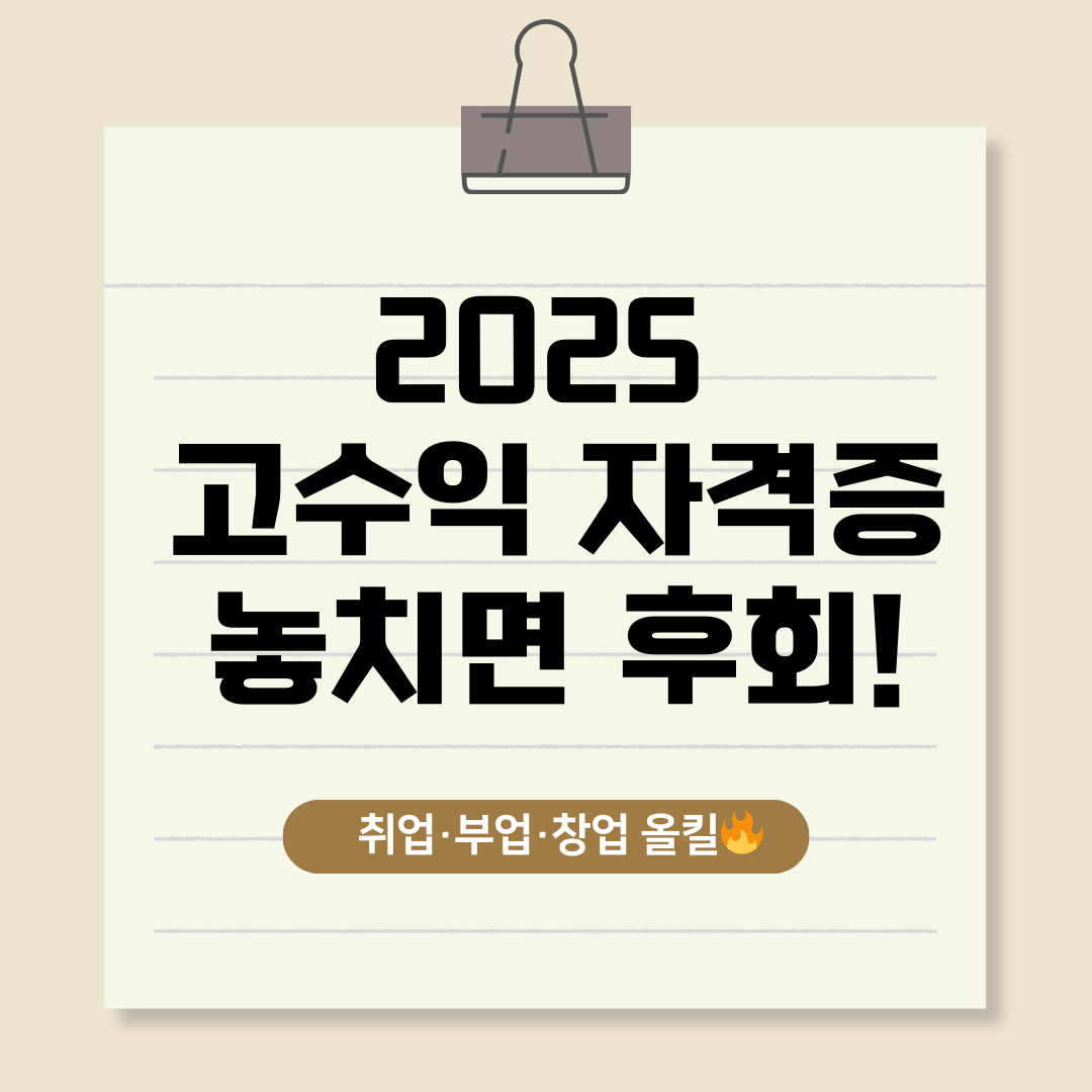 2025년은 더 이상 정규직 하나로 평생을 보장받을 수 없는 시대예요. 직장 안정성도 예전 같지 않고, 월급만으로는 원하는 삶을 누리기 쉽지 않죠. 그래서 요즘 많은 사람들이 주목하는 것이 바로 '자격증'이에요. 특히 한 번 따두면 **취업, 부업, 창업까지 연결**되는 ‘고수익 자격증’은 수요가 계속 늘고 있어요.
