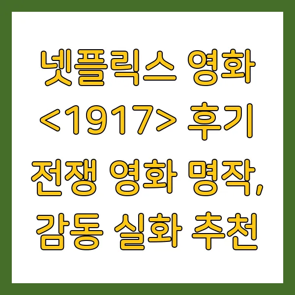 넷플릭스를 통해 '1917'을 편리하게 감상할 수 있다는 점 또한 큰 장점입니다. 시간과 장소에 구애받지 않고 언제든지 이 훌륭한 작품을 감상할 수 있으니, 전쟁 영화 팬이라면 놓쳐서는 안 될 기회죠. '1917'은 넷플릭스가 제공하는 다양한 콘텐츠 중에서도 단연 돋보이는 작품 중 하나입니다. 넷플릭스를 통해 더 많은 사람들에게 '1917'의 감동과 메시지가 전달될 수 있기를 기대합니다.