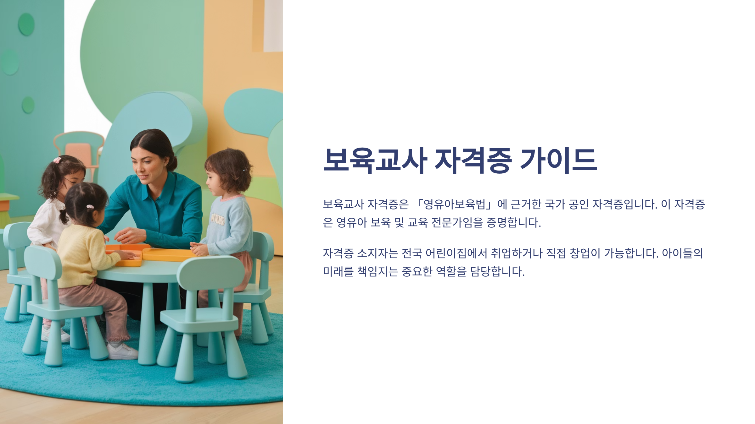 내가 생각했을 때, 보육교사라는 직업은 단순히 자격증을 넘어서 아이들의 첫 교육을 책임지는 중요한 존재예요. 아이들만큼 순수하고 예쁜 마음을 가진 이들에게 정말 잘 맞는 직업이라고 느껴요. 😊