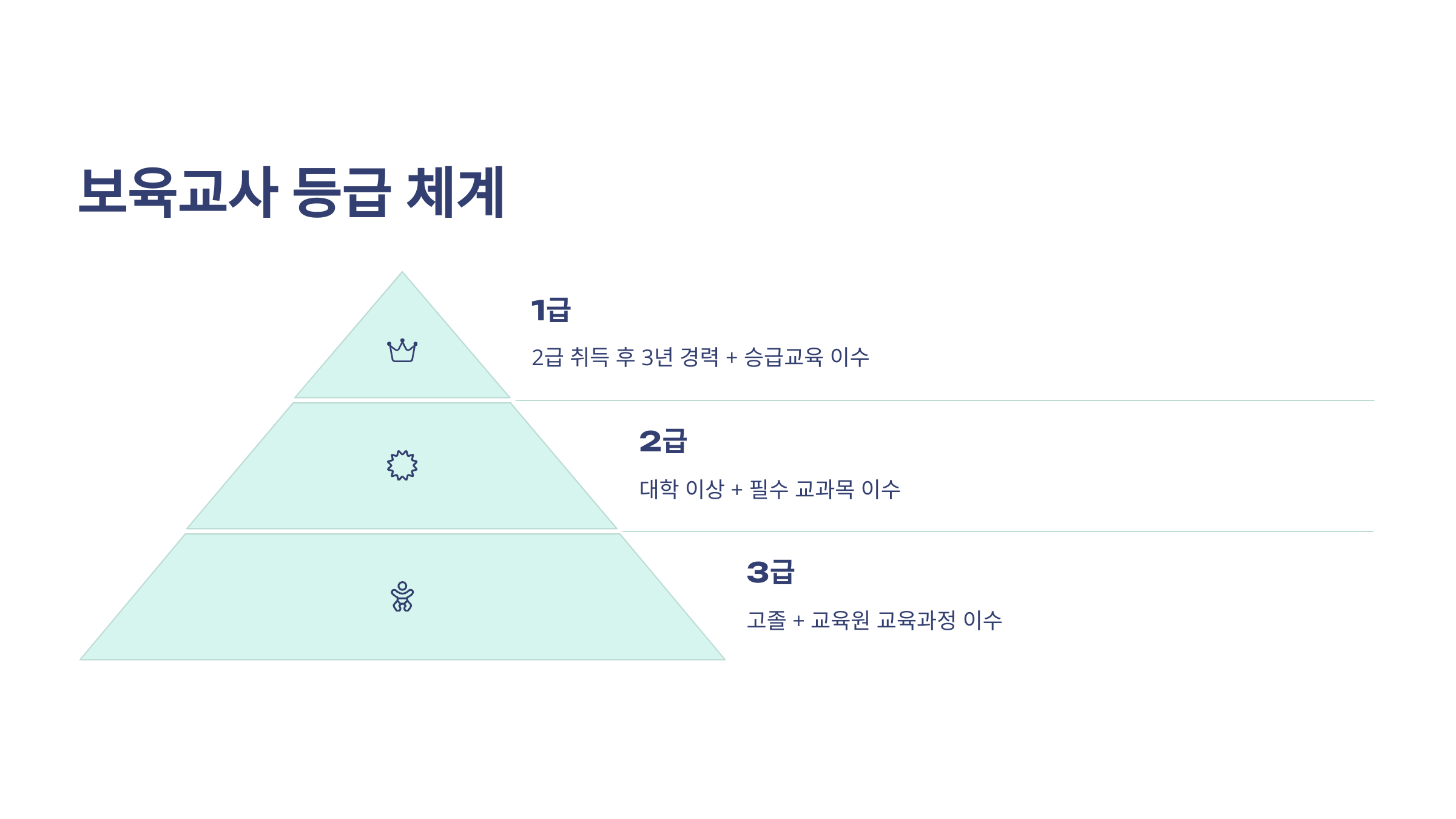 3급 보육교사는 과거 단기 양성과정으로 발급되었지만, 현재는 신규 발급이 중단되었어요. 기존 3급 자격증 소지자는 경력을 통해 2급으로 승급할 수 있도록 제도가 마련되어 있어요. 하지만 현재는 거의 대부분 2급부터 시작한다고 보면 돼요.