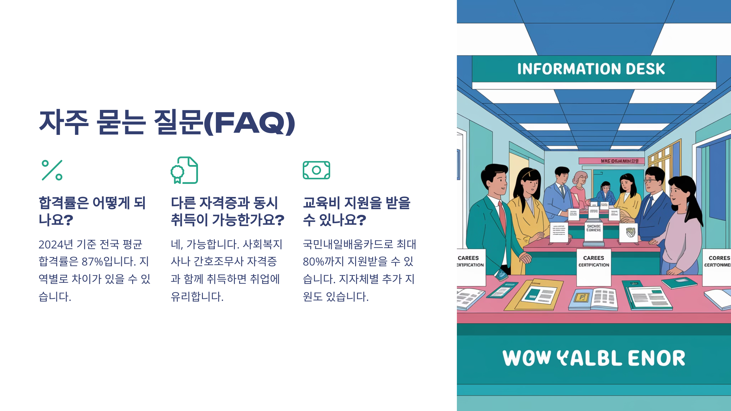 | 자격증 신청 | 온라인 신청 및 발급 가능 | Q-Net 또는 복지포털 |