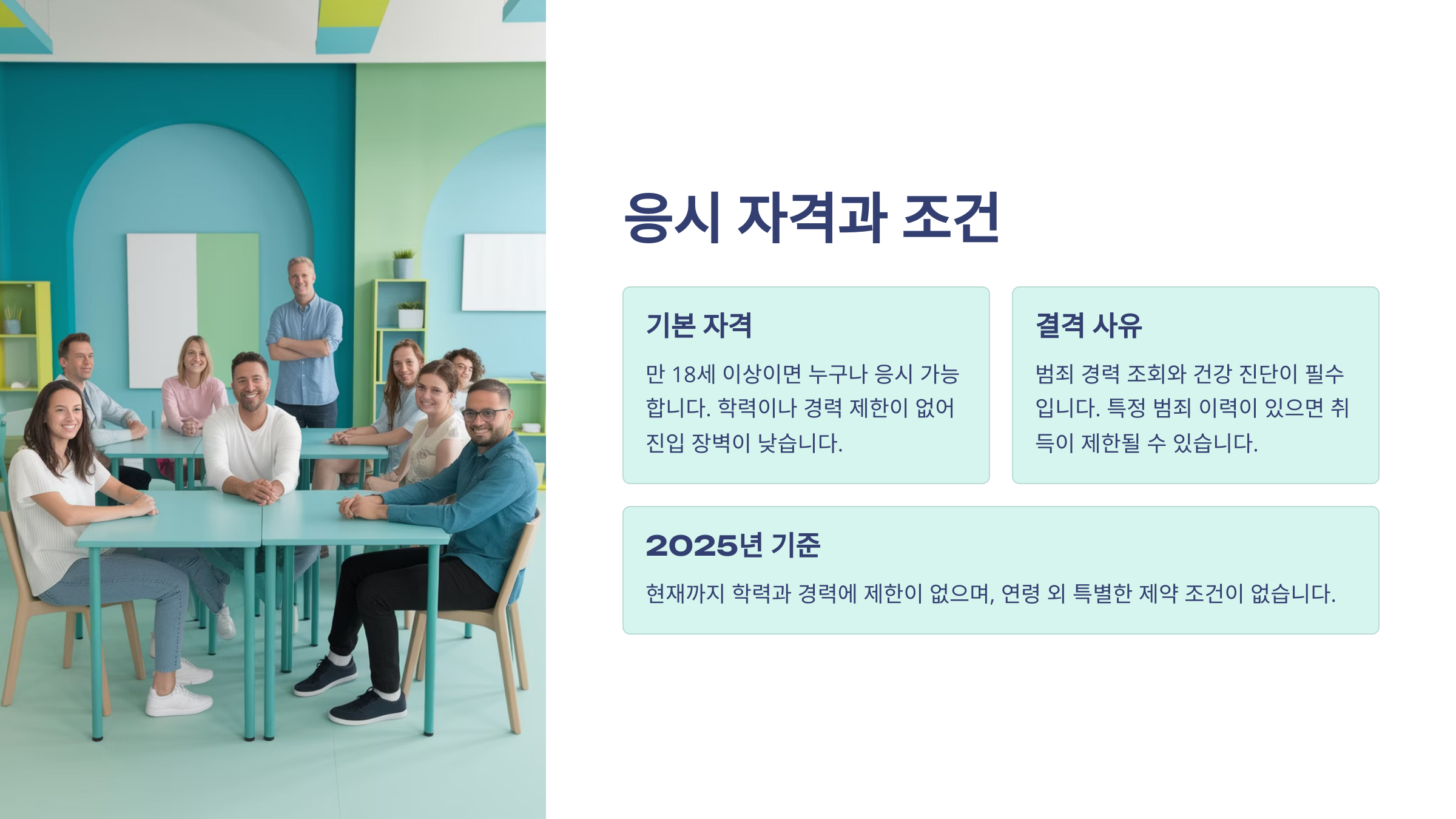 | 학력 | 제한 없음 | 중졸 이상 추천 |