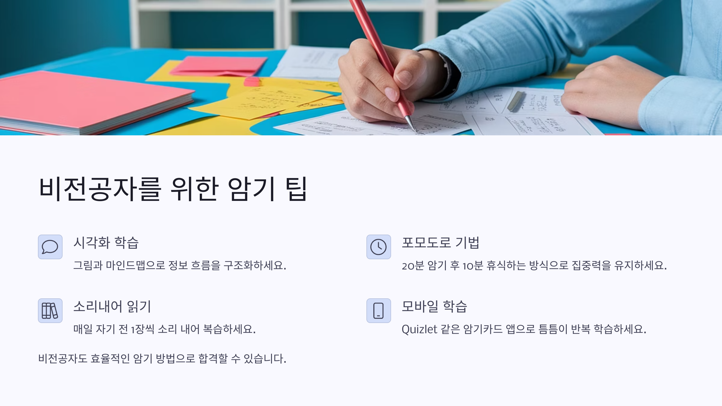 교재는 하나만 정해서 반복하는 게 중요해요. 여러 권 보다가 헷갈리기 쉬우니까요! 다음은 암기 팁이에요. 비전공자 기준, 정말 도움되는 요령들을 알려드릴게요! 🎯