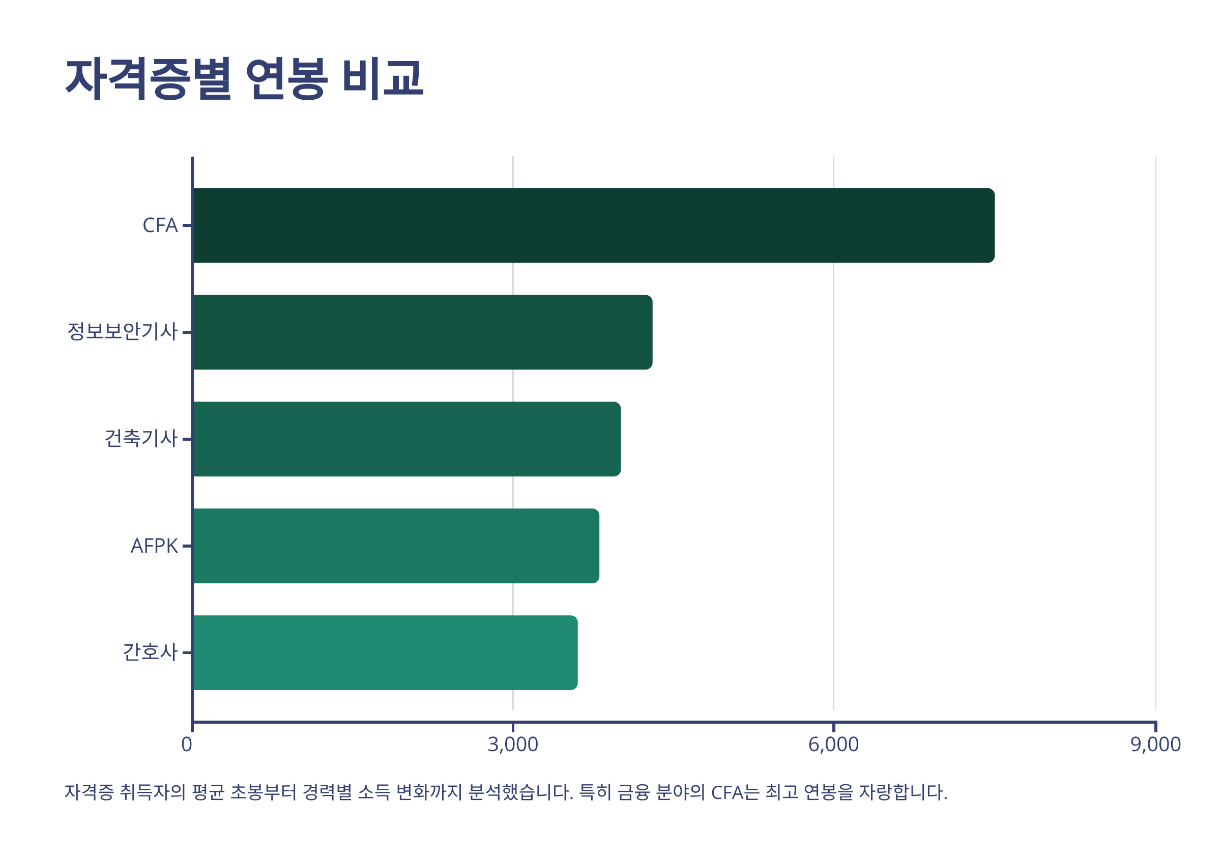 이제 가장 중요한 내용이죠! 각 자격증이 현실적으로 얼마만큼의 수익을 가져다주는지 평균 연봉 기준으로 비교해볼게요.