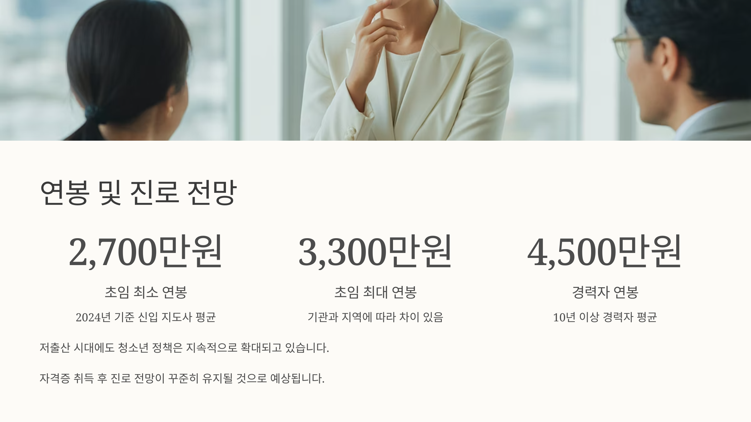 무엇보다 2025년 현재 정부의 청소년 복지·상담 정책이 확대되고 있어서 청소년지도사의 수요는 계속 늘고 있어요. 특히 위기청소년, 학교 밖 청소년, 다문화 청소년을 위한 지원이 강화되면서 청소년지도사는 필수 인력으로 자리 잡고 있어요.