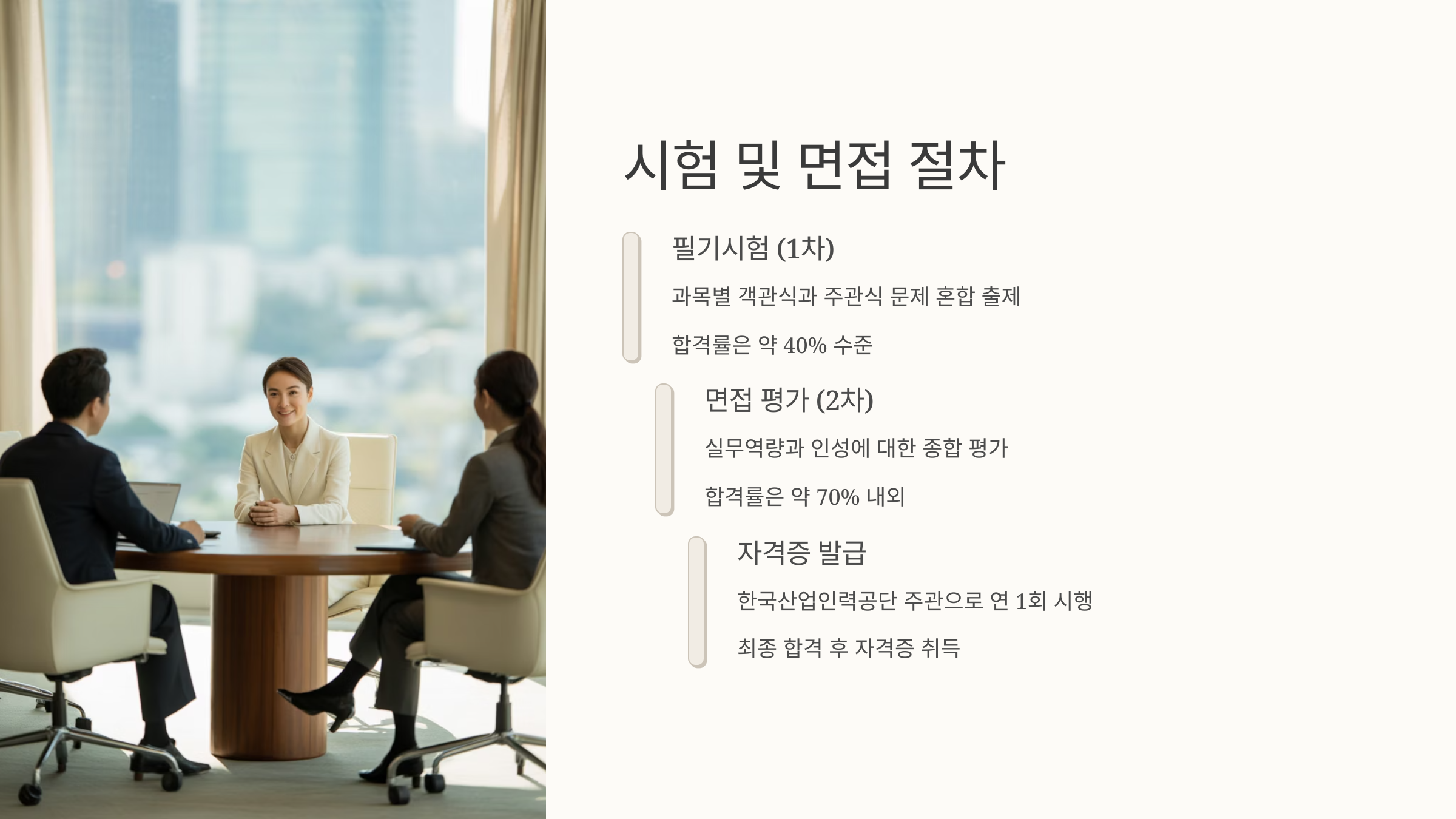 그럼 다음은 면접시험 준비법과 자격 취득 절차의 흐름을 더 자세히 설명해드릴게요! 계속 볼까요?